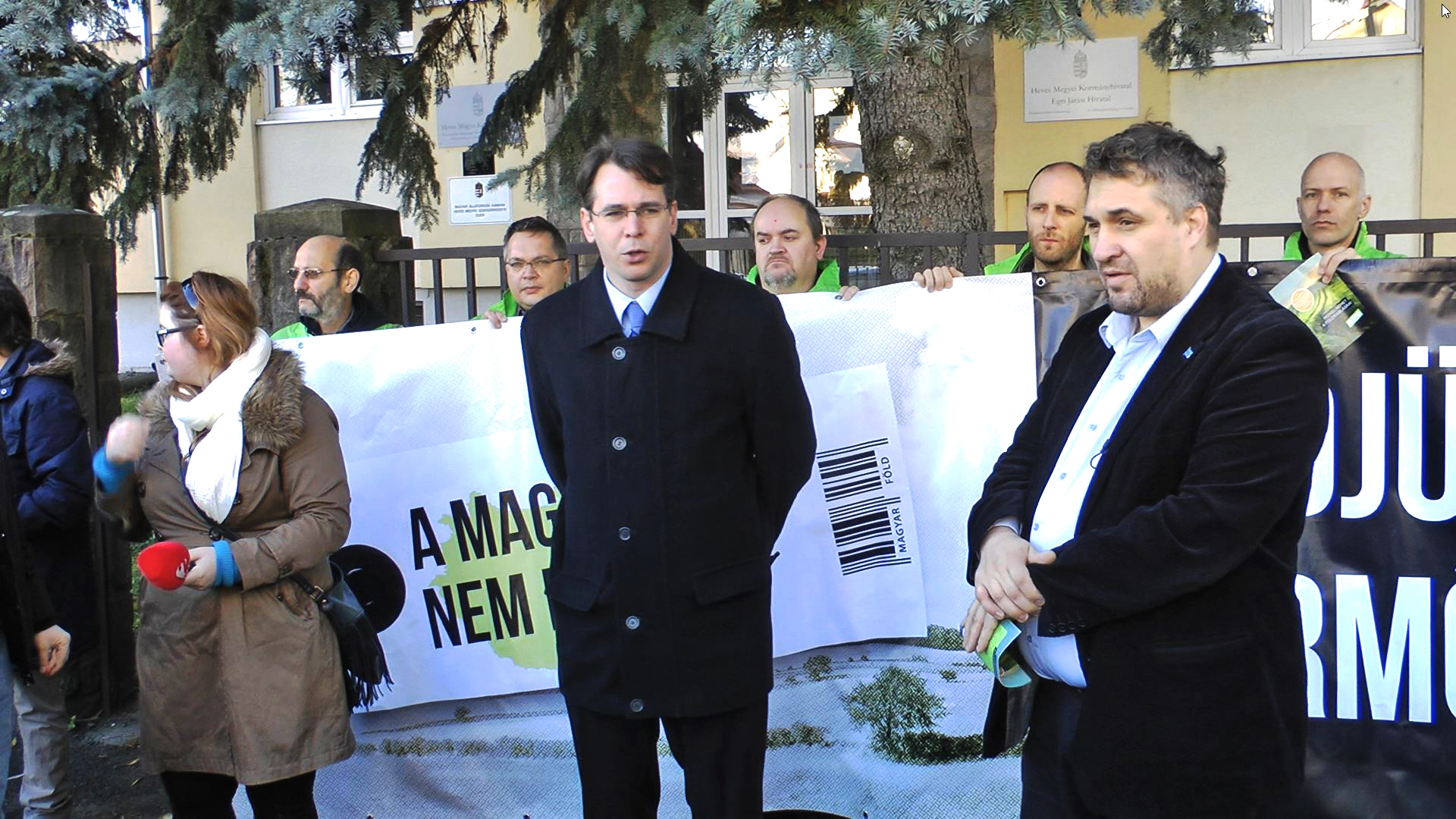 Az LMP és a Jobbik szerint a hétfőn kezdődő földárverések nem a kis- és középbirtokosok, hanem a spekulánsok és az oligarchák érdekeit szolgálják. Erről Sallai R. Benedek (LMP) és Mirkóczki Ádám (Jobbik) országgyűlési képviselő közös sajtótájékoztatón beszélt Egerben, ahol az LMP élőlánccal tiltakozott az árverések ellen.